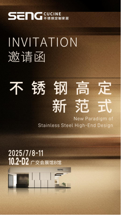 2025年7月8日-7月11日,森歌诚邀您莅临中国建博会(广州)展馆B区设计定制区10.2-D2,零距离鉴赏前沿不锈钢工艺的非凡魅力,共探定制家居行业的未来趋势!
