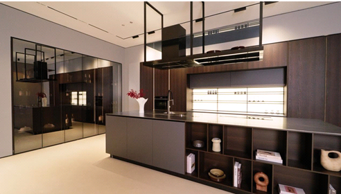SENG CUCINE科技生活馆一楼空间呈现由国内外顶尖设计团队打造的多个系列新品,产品体系全面覆盖中西厨空间系统、卧房系统、亲水系统、客餐厅社交系统、墙护系统、户外餐厨系统这六大空间系统。
