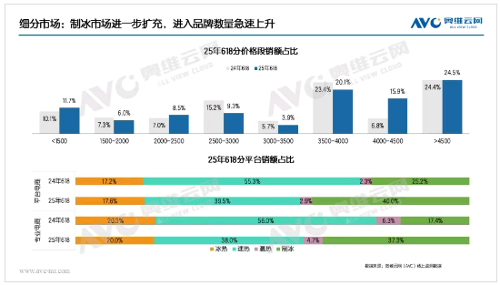 受国家补贴政策及创新功能驱动,2025年618期间净饮机行业增长势头显著。其中,制冰净饮机成为市场新宠,市场份额快速提升,强劲拉动中高端价格段产品的销售增长。消费者对净饮机的需求已不再局限于单纯的饮水功能,集制冰、加热、净化等多种功能于一体的复合型产品,正成为市场主流选择。