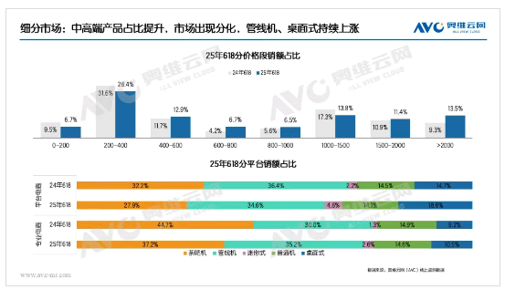 分价格段来看,国家补贴政策显著影响了消费者的购买决策。用户更倾向于在同等价位下追求更高品质的产品,这使得低价格段产品市场份额持续缩减,市场资源加速向中高端产品倾斜,消费升级趋势愈发明显。