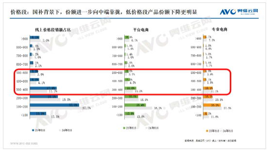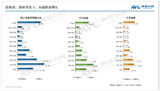 价格段:线上高端市场增长放缓,新需求持续向两端扩展