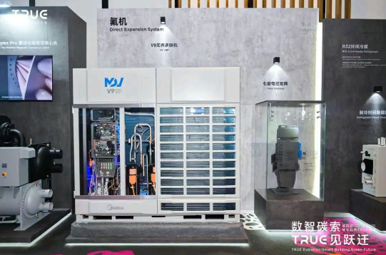 在绿色低碳展区,美的楼宇科技展示了以国产化替代和数智化应用为特色、包含“绿色输入-高效利用-绿色焕新”在内的全链路的绿色低碳解决方案体系;在智慧工业展区,现场展示了集成暖通、热泵、空压机、电梯及能源控制平台等产品,以及美的高效机房、智能化系统等的软硬件一体化交付服务,为新建或改造低碳工业园区提供整体解决方案;创新商业展区,美的楼宇科技根据不同细分场景的需求,展示了连锁门店智慧生态解决方案、酒店绿色高效运营方案、商业地产智慧解决方案,为商业运营的可持续性赋能;在数智基建区域,主要展示了数据中心和轨道交通解决方案,以创新性、高效性、数智化、低碳化为典型特征,帮助客户提高建筑的能源效益,降低运营成本。