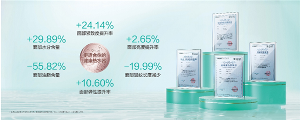 这些遵循华帝提出的“科技因生活而在,生活因技术而优”理念的“白科技”,实际使用的效果如何呢?谱尼测试集团深圳有限公司检测报告显示:使用该款热水器28天后,受试者面部水分含量提升29.89%,面部油脂含量降低55.82%,面部皱纹长度减少19.99%,面部紧致度提升24.14%、弹性提高10.6%、亮度提升2.65%。