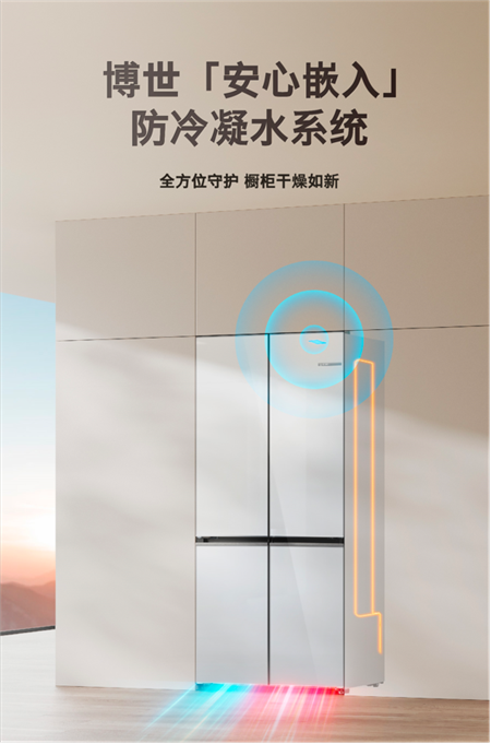 潮湿,是厨房的隐形敌人。传统平嵌或零嵌冰箱产生的冷凝水,因无独立空间和阳光和风作用,无法挥发导致积聚,常使橱柜受潮发霉,而母婴家庭对环境干燥度的要求更为严苛。博世小平安冰箱搭载博世安心嵌智能抗冷凝系统,通过三大创新技术升级彻底解决这一痛点。智能温湿度传感器可以24小时环境温湿度,协同调整整机工作效率;立体环绕式冷凝管24小时热力巡航,有效防止凝露产生;搭配底部散热系统可以提高底部散热效率,加强湿热空气排出。
