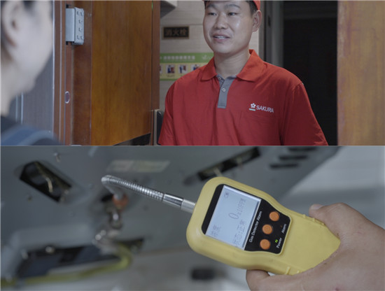 “离不开的伙伴”,王女士对樱花在家庭里扮演的角色给予了高度评价。不管是日常做饭,还是家庭聚会,亦或是洗浴,樱花就像忠实的伙伴,一直陪伴着家人的生活。今年,王女士也积极预约了樱花安检服务“在手机上点几下就约好了,不到半天就收到确认短信,说第二天下午上门,特别方便。”她边说边指着厨房台面上的服务工单,“你看,师傅自带的工具包整整齐齐,检查得非常仔细。”