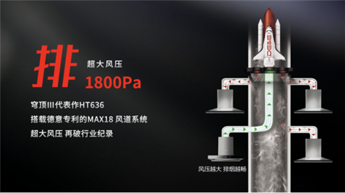 从上面的调查报告我们可以看出,“油烟排出去”这一重要步骤被越来越多的消费者关注与认可。真正的净烟,是要顺利排出去。面对城市高层厨房常见的烟道倒灌问题,穹顶III至尊版不负众望,搭载了德意最新的MAX18大风压核心科技,缔造了新的行业级录——1800Pa超大风压。即使是做饭高峰期、公共烟道拥堵,依然能一路强排不倒灌,做到真正的“排尽油烟”,保障厨房空气质量。