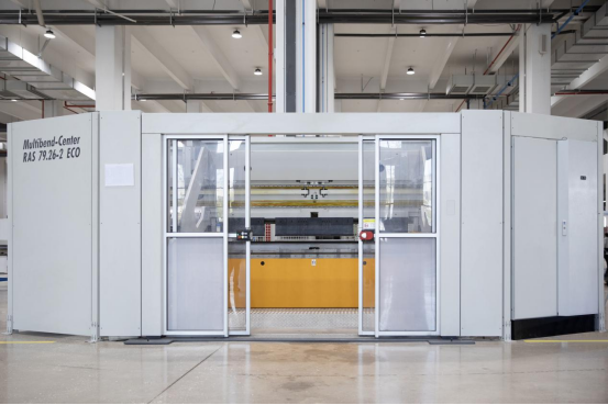 在森歌不锈钢生产车间,配备了德国通快数控冲床实现全自动化操作,排料、进给、冲压三道工序一次完成,精度可达0.005MM,快速、高精度、高质量;跑车级RAS柔性折弯中心(全球仅10台)一体成型,甚至还能定制异形刀模;芬兰仕丹数控折弯机能一次制作出长达2.8M的圆弧形门板造型,无刀痕更美观。