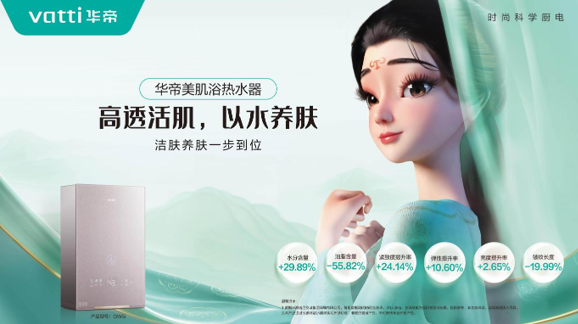 2025年,华帝发布“美肌浴”热水器,自研高透活肌科技,在高能磁空间场中洛伦兹力作用下,使水分子团簇被赋予了更高的活性,以这种水分子团持续冲洗皮肤,可以实现深度清洁、深层补水的双重作用。这一技术突破让热水器从“安全恒温”跃升至“以水养肤”,推动热水器行业迈入4.0时代,也为用户带来“健康+美肌”的全新沐浴体验。