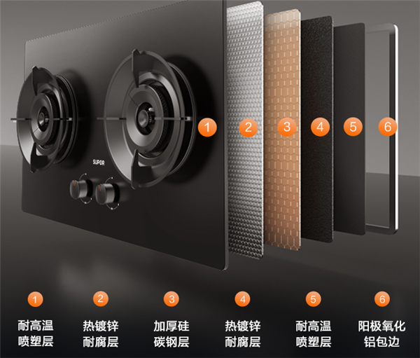 防爆灶AB58之所以能如此出色,得益于苏泊尔采用的先进材料与工艺,采用了六重合金磨砂防爆面板,经过镀锌与喷塑两大工艺的深度处理,赋予了面板卓越的耐腐蚀性和耐用性,不仅能稳稳支撑起150KG的重物,还能够承受高达1500℃的高温,性能远超行业标准,确保了厨房使用的安全性与可靠性。