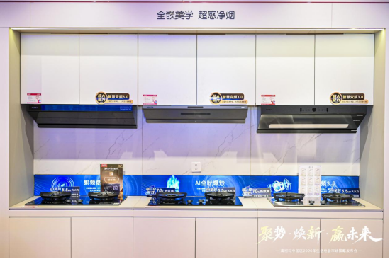 与吸油烟机形成烹饪闭环的,是本次发布的全新三环直喷猛火系列燃气灶。中式烹饪中,“大火力不持久、小火力不稳定”是长期存在的痛点,而通过三环三控直喷结构,该系列燃气灶可实现5.2kW大火力与350W微焰慢炖的宽幅调节,五种精控火力模式精准适配煎炸焖溜炖各类烹饪需求;参考商用灶具设计,中心直喷火焰比常规中心火焰高出5厘米以上,大厨颠勺也能维持锅内温度不降;浅芯聚能炉架有效减少热量散失,热效率高达70%,让家庭厨房也能轻松驾驭专业级火候。作为2026年技术升级的核心产品,它还采用荷叶仿生玻璃面板与分体式炉头,油污一擦即净,重新定义中式烹饪的便捷与高效。