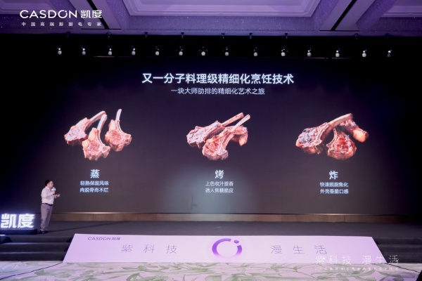 发布会上,品牌TVC“水哲学”大片《漫》、备受期待的AI数字生命体“小紫”以及凯度ZR Pro 2微蒸烤炸炖炒焗一体机等多款新品惊艳亮相,共同描绘了一幅与用户情感深度共振的全新厨居生活方式图景。