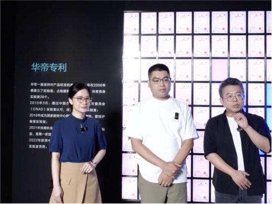 直播开场,主持人与观众一同追溯华帝的品牌发展脉络——作为2008年奥运会火炬制造商,华帝火炬以低熄灭率、环保安全等特性著称,其燃烧技术、材料选择和工艺设计都处于行业领先地位,并将火炬技术创新应用于燃气灶及热水器的燃烧系统;随后,历史墙前,1992年成立以来的关键节点一一呈现:从推出首台嵌入式燃气灶,开启厨电嵌入式时代;到研发国内首个自清洁烟机,率先攻克烟机清洁难题;再到参与制定多项行业标准,引领行业规范化发展;以及首创厨电行业AG玻璃面板应用、烟机蒸水洗技术……