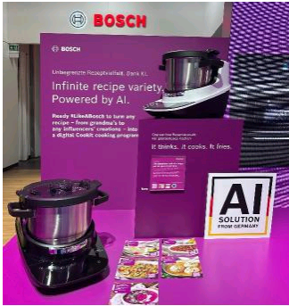 博世家电同样让人工智能(AI)融入日常生活场景,例如膳食规划:当用户在互联网中搜寻新菜谱时,可通过博世Cookit智能烹饪机全新推出的“AI食谱转换”功能,将网络食谱直接发送至设备并进行自动烹饪。该功能利用AI将食谱转换为引导式操作流程,自动识别所需配件、烹饪时间等关键参数。博世8系烤箱的AI功能也进一步升级,现可识别多达100种菜肴——用户只需放入食材,烤箱便会自动推荐最优烹饪模式。