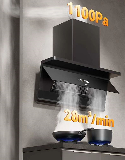 智能吸排:28m³/min飓风+1100Pa静压,油烟不过脸