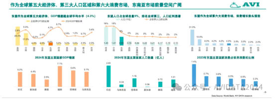文建平援引AVI DATA和权威公开研究数据指出,东盟作为全球第五大经济体,2024年GDP增速达到4.3%,持续领先全球平均水平。该区域人口总数位列全球第三,占世界总人口的9%,人口红利依然显著。