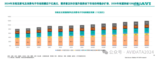 根据相关数据显示,2024年东南亚家电及消费电子市场规模已接近1000亿美元。在需求普及与价值升级的双轮驱动下,预计到2030年,该市场规模将突破1200亿美元。