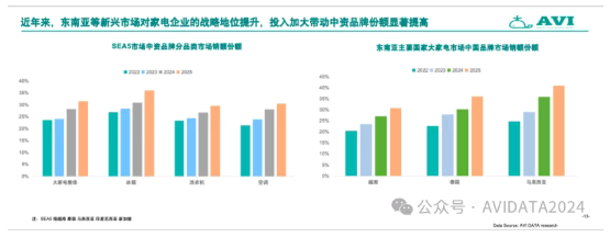 近年来,随着中国企业战略资源倾斜与投入加大,中资品牌在东南亚市场份额显著提升。AVI DATA数据显示,在越南、泰国、马来西亚、印度尼西亚、新加坡这五个重点市场(SEA5),中国品牌多个品类销售额份额持续增长。大家电市场中国品牌份额已形成不可忽视的力量。