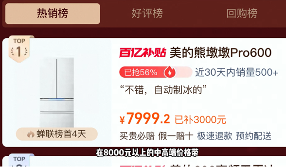业内人士表示,美的冰箱单品实力霸榜销量第一的背后,展现出了美的始终坚持以用户需求为核心的创新产品逻辑,美的熊墩墩系列冰箱凭借技术创新和个性化定制,精准满足多元用户需求,助力消费者从“基础刚需”向“品质体验”跃迁升级,不仅赢得了广大消费者高度认可,更进一步夯实行业龙头地位,有望持续领跑双11冰箱市场。