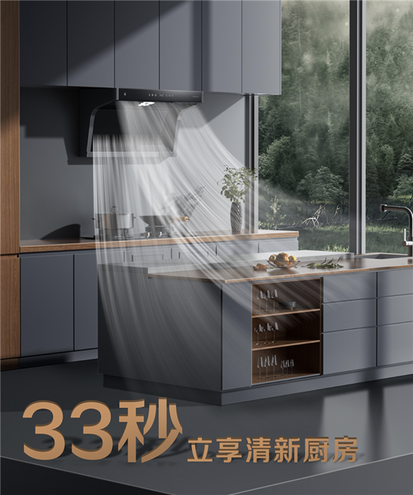 烹饪时的热气和油烟,往往是对厨房的一大考验。樱花吸油烟机Q601M以薄型潜吸形态,巧妙融入厨房格局,带来开阔的视野和轻盈的空间感,让烹饪空间不再局促。25m³/min澎湃吸力和大直径风轮支撑,可在油烟升腾时迅速拢排,33秒即可让空气立享清新。