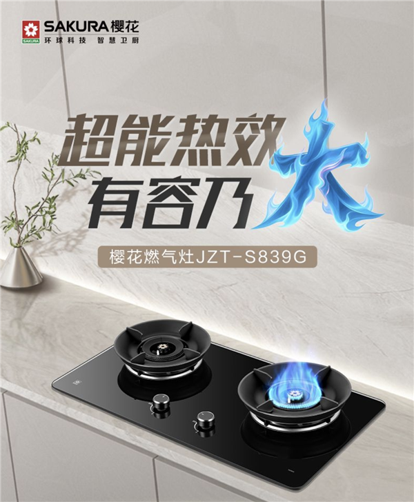 火候迅猛,鲜香美味更丰盈 餐桌上的每一道佳肴,都承载着对家人的细腻关怀。樱花燃气灶S839G以零秒开阀实现即点即燃,避免长时间按压的等待,让火力随心而动。5.2kW超猛火焰让每一次爆炒都能轻松驾驭食材,锁住食材的鲜香质感;76%超高热效确保每一份燃气都被充分利用,让家庭烹饪既高效又节约。