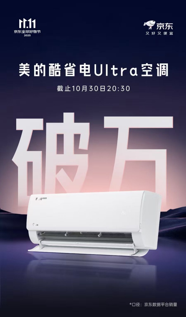 2025年双十一大促战火正酣,美的空调再度展现强劲市场号召力,持续领跑双十一淘系全站空调品牌榜。京东双十一开门红截至10月30日20:30.美的酷省电Ultra空调销量就已强势破万,无风感、全面风等创新系列产品口碑与销量双线飘红,以持续领跑姿态引爆今冬消费热潮。