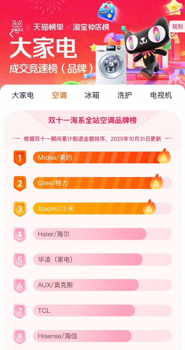 业内人士认为,当下空调市场的消费决策正经历深刻变革,消费者已不再为单一低价、某个功能或某项服务就轻易买单,而是转向一种审慎、立体的“体系化决策链路”。美的空调精准把握这一趋势,构建“科技创新+技术分层+服务保障”三位一体的价值体系成功引领行业转向价值竞争。“无风感”技术通过层递式柔化气流设计,实现“有凉感无风感”,重塑舒适边界,完美呵护老人、母婴等敏感人群;“酷省电”将节能转化为可感知的电费节省,兼顾节能与速冷需求,省电效率提升40%,直击用户核心痛点。在技术分层上,通过从“空气机”到“全面风”等差异化产品矩阵,实现全场景需求覆盖,让用户可在体系内完成“一站式”匹配;服务上,凭借整机六年包修、0元安装及至高1399元钜惠等权益重构信任体系,为消费者提供从购买到长期使用的完整承诺。这套完整的价值闭环,推动美的从“产品制造商”升级为“价值解决方案提供商”,借双十一大促,美的有望进一步扩大领先优势,为全年业绩再注强劲动能。