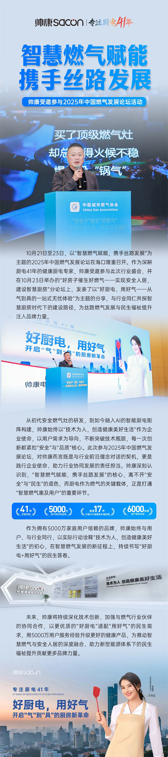 首页 > 新闻 > 智慧燃气赋能,携手丝路发展|帅康受邀参与2025年中国燃气发展论坛活动