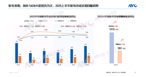 一是量缩价升的结构性分化。奥维云网(AVC)推总数据显示,2025年上半年彩电市场销量达1375万台,同比微增1.8%,但销售额同比增长7.5%,销额攀升至561亿元。细分尺寸中,75英寸及以上产品销量占比为40%,85英寸产品销量份额同比增长2.9个百分点,98英寸、100英寸产品销量同比分别增长57.4%、83.1%,印证了大屏化驱动价值升级的核心逻辑,市场结构逐步向大尺寸、高价值加速倾斜。