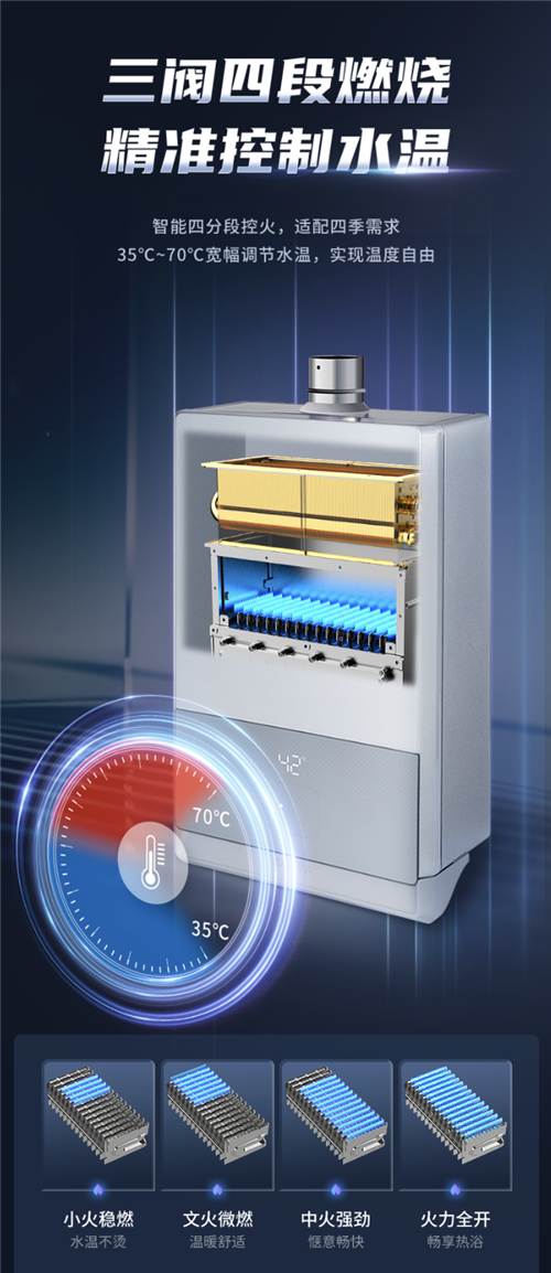 入秋之后,温润的水流也成为时光里的另一种温柔。樱花燃气热水器E509A搭载PID智能恒温技术,可极速响应精准控温,让每一滴水都保持恰到好处的温度。配合三阀四段燃烧系统与智能四分段控火,可精准调节35℃~70℃的宽幅水温,恒温体验全面升级。