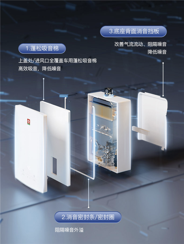 以强劲实力,重塑家庭热水体验,樱花燃气热水器E508A采用一体纯白玻璃面板,干净细腻,触之无痕,牢固结实,又兼具美观雅致,其静音表现也映照出家的秩序与安宁。上盖处与进风口全覆盖车用蓬松吸音棉,实现高效吸音;中部配备消音密封条与密封圈,层层阻隔噪音外溢;底座背面消音挡板有效改善气流流动路径,从源头减少噪音,樱花燃气热水器E508A以轻音送暖,让加班夜归时,也能安静沐浴,不扰家人沉眠。