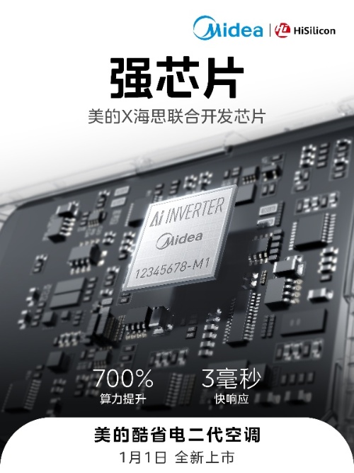 美的酷省电二代搭载由美的与海思联合研发的行业首款AI变频芯片,实现从“固定算法执行”到“本地实时决策”的底层跨越。这颗“强芯”,带来700%的算力提升,响应速度快至3毫秒,能实时感知室内温度、人员流动、不同家庭成员生活习惯等环境场景变化,本地瞬时计算出最优省电路径,如同给空调装上“超级大脑”,从根源上解决了传统空调响应延迟、节能低效的痛点。