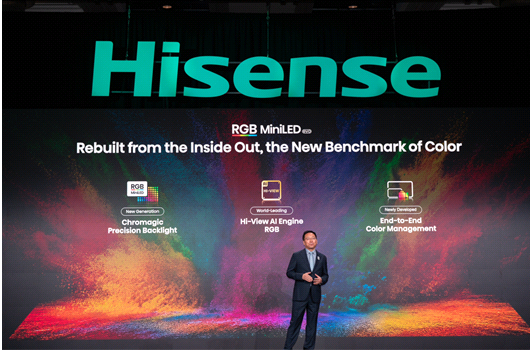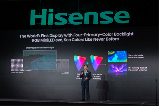 为了打破传统Mini LED和OLED的色彩、能耗及视觉舒适局限,进一步提升大屏时代显示设备的用户体验,海信一年前开创并全球最先量产了RGB-Mini LED电视,这一创新技术随着全球TOP5电视品牌悉数布局,迅速成为全球高端电视的趋势热词。“RGB与Mini LED的结合,是一场颠覆性的变革。”海信视像科技总裁李炜在今年CES的展前发布会上表示,为了还原那份无限趋近于肉眼所见的极致真实,全新一代RGB-Mini LED技术带来了三大进化。
