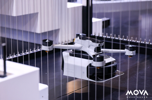 走进CES MOVA展台始终人头攒动,一进来就能感受到一种迥异于传统家电展台的磁场。人群密集簇拥在几个动态演示区,其中首当其冲的就属MOVA Pilot 70飞行模组,在这里无人机稳稳吊起扫地机器人,缓缓升空,落在模拟家中二楼或楼顶的平台上。