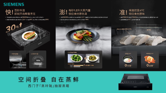 作为拥有百年蒸烤积淀的品牌,西门子家电始终致力于以创新重构人与厨房的关系。西门子「蒸玲珑」抽屉蒸箱以“快、准、澎”的核心技术保障蒸鲜品质,更凭借协同设计,让健康烹饪自然融入生活节奏。它不仅为蒸箱品类开拓了新的想象,更诠释了未来厨房的理念:真正的进化,不在于占据更多空间,而在于让每一寸空间都释放更高价值。