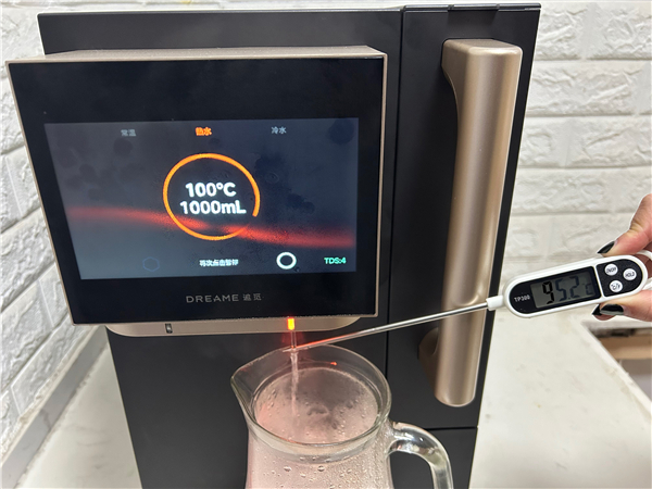 实测数据显示,启动热水功能后,从触发出水指令到水温达到100℃设定值很快,较传统饮水设备加热效率大幅提升。需注意的是,出水实际温度会受环境温度影响。当前南方多地降雪、气温低至零下,极端低温环境下实际出水温度略有下降。尽管如此,追觅S1凭借高效的加热模块和智能温控算法,仍适配冬季晨间冲泡奶粉、夜间沏茶等时间敏感型场景,有效减少用户等待时间。