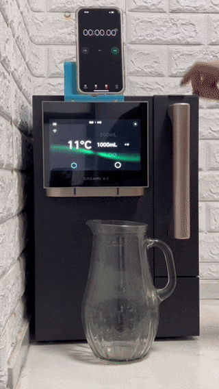 在多人家庭或办公环境中,净饮机的连续出水能力尤为关键。以1000ml定量模式为例,出水全程流速恒定,未出现断流或飞溅现象。进一步测试150ml、250ml等短时出水档位时,仍能保持出水量精准度与温度稳定性,不会出现“热水变凉、冰水变温”的情况,充分满足了不同场景下的用水需求。