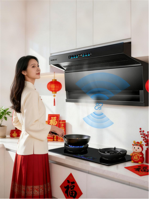 核心亮点直击——智能控风+烟灶联动,“风随火动”彻底解放双手!无需复杂操控,开火自动启动烟机,火候调大风力同步增强,火候减小风力自动减弱,全程不用手动触碰,主动拦截油烟。不管是返乡后给家人做菜,还是过年多菜同烹,油烟都能秒吸干净,厨房始终清爽。飓风级吸力搭配稳定火力,高楼层排烟、中式重油烟全搞定,让你专注菜品本身,轻松做出一大桌团圆饭,不用分心反复调烟机,真正实现省心烹饪。