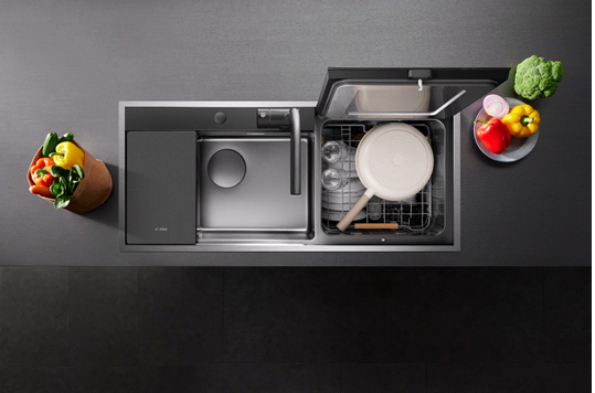传统洗碗机被诟病的另一大原因是功能单一,似乎只为餐后服务,价值有限。方太新一代洗碗机的创新,打破了功能的边界,将其融入到整个厨房的工作流。开创性地将水槽、洗碗机、果蔬清洗机融为一体,实现了不弯腰即可操作的设计。充足的容量设计,可以轻松容纳11套餐具,应对家庭聚餐依旧从容。在此基础上,它将洗、切、配、沥的功能整合在水槽区域,让用户在备菜时就能随手清洗处理食材的刀具、砧板和小件餐具,饭后也能便捷处理锅碗。这种场景化集成的设计,让洗碗机从一个孤立的电器,转变为一个提升全家备餐效率、优化烹饪动线的清洗中心。它节省的不仅是洗碗的十几分钟,更是消除了烹饪过程中因动线混乱、反复清洗而产生的隐形耗时与烦躁感。