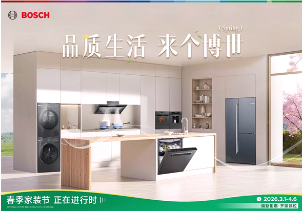 作为全球家电行业领导者之一,博西家电深耕中国市场三十余年,旗下博世家电与西门子家电已成为众多家庭品质生活的选择。3月1日至4月6日,两大品牌联合启动2026春季家装节,以覆盖全国的焕新活动和系统化的套系产品,回应消费者对“一次定型、一步到位”的家电升级需求。