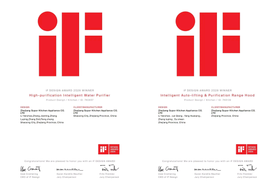 近日,全球工业设计领域的权威风向标——2026年德国iF设计奖(iF DESIGN AWARD 2026)获奖名单正式揭晓。苏泊尔(SUPOR)凭借对用户需求细节的专注与务实创新的设计态度,旗下真鲜水系列净水机与双叶轮系列烟机两组产品,双双斩获这一国际顶级设计殊荣。