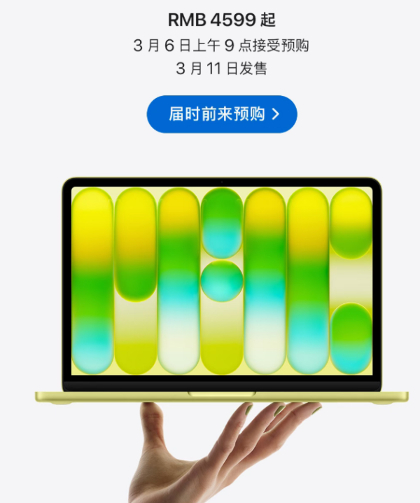 3月4日晚间,苹果正式推出了全新的笔记本电脑系列——MacBook NeoMacBook Neo,售价4599元起。3月6日上午9点接受预定,3月11日正式发布。这是苹果继MacBook Air和MacBook Pro之后,时隔多年再次开辟的全新笔记本产品线。