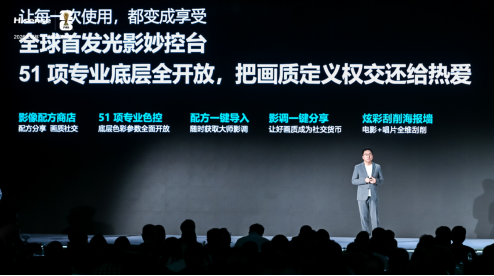 海信UX2026款搭载行业首创光影妙控台,内置大师级调色方案可一键复刻专业画质,更开放51项核心参数支持资深玩家精细调节,更有调色配方商店,未来将汇集导演与专业调色师的大师方案,支持一件复制,普通用户也能轻松调出专业级画面,解锁画质调试互动新体验。