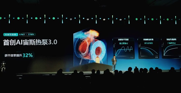 2、行业首创 Ai 宙斯热泵 3.0 三效烘干系统,再次突破行业热泵洗烘一体机的技术壁垒,融合热泵精准控温、冷凝快速除湿、电辅热快速升温三大核心技术,烘干效率提升 32%,42℃低温柔烘不伤衣,配合三变频 1:1 正反匀透烘,实现“烘得快又烘得好”;