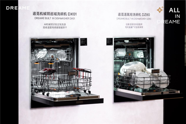DX01洗碗机彻底颠覆了传统喷淋逻辑。追觅行业首创AI全域机械臂喷淋技术,双关节驱动结构配合AI算法,能识别餐具上的污渍类型和分布,然后精准执行定点定向冲刷。哪儿脏冲哪儿,怎么脏怎么冲。