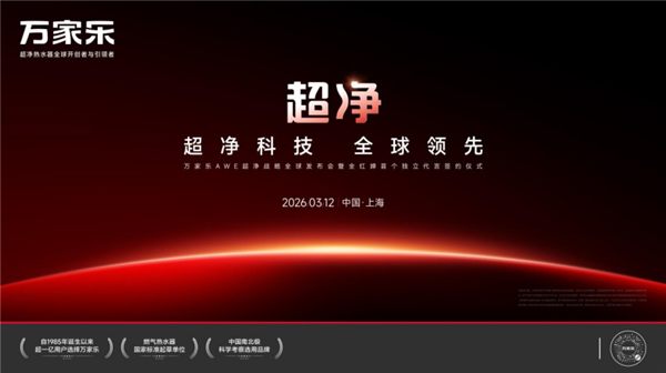 AWE 2026的惊艳亮相只是一个开始。未来,万家乐将持续夯实技术壁垒,不仅要做超净热水器的开创者,更要做全球家庭美好生活的守护者。在超净科技的赋能下,万家乐正引领中国制造以昂扬的冠军姿态,闪耀在世界科技竞争的最前沿,拿捏每一个关于健康的未来!