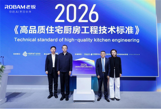 论坛最后,中国房地产业协会、中国建筑标准设计研究院与老板电器共同发布《高品质住宅厨房工程技术标准》。该标准将“好房子”的“安全、舒适、绿色、智慧”要求转化为厨房领域的可执行技术指标,并创新性增加了“好服务”维度,系统性回应油烟串味、空间混乱、收纳不足等行业痛点。它不是一套挂在墙上的文件,而是一套可设计、可施工、可验收、可维护的完整方法论。这套标准体系的背后,是老板电器47年服务中国家庭的经验沉淀,更是从“产品思维”向“空间思维”升维的系统表达。