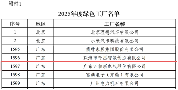 据悉,此次评选按照《绿色工厂梯度培育及管理暂行办法》、《工业和信息化部办公厅关于开展2025年度绿色工厂推荐工作的通知》有关要求,经企业自愿申报、省级工信部门推荐、专家审核及社会公示等严格程序。万和凭借出色的绿色制造体系、清洁生产技术和完善的能源管理体系,在众多参评企业中脱颖而出。