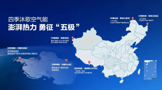 其中,“五大极地” 项目堪称行业灯塔标杆,以实际应用验证了四季沐歌清洁能源解决方案在高寒高湿、暴风雪等极端气候条件下的可靠适配能力,保障稳定供能,充分彰显了企业强大的产品实力与项目落地能力。