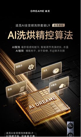 追觅L9洗烘套装搭载AI洗烘精控算法,就像是赋予了其一套能实时感知、动态决策、持续进化的智能系统:AI智洗功能,毫秒级感知衣物重量、含水率,调用云端大数据,自动匹配洗涤剂用量、水温、调节洗涤时长,真正省时省水省电;AI智烘功能能够精准判湿,实现衣干即停,不过烘也不欠烘;AI×DD电机实现滚筒角度和速度的精准控制;AI净味功能,解决用户洗后忘取的痛点,洗涤结束后检测到忘取衣物,自动开启等离子新风巡航,12h自动托管防闷馊。