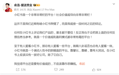 但就话题内容的预估体量而言,预计发布会的热度将远高于俞浩发微博,实在没什么网上所谓“铺垫炒作”的必要。